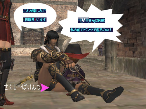 THE 変態☆ サブリガをタルタルの顔に押し付けるのが趣味の変態Vさん・・・ この後3・3にPT分かれて、私と別々になったんだけど、 そして数分後 アルザダール海底遺跡群に響くT樽さんの断末魔が・・・ 生で見たかった><【残念です。】 T樽さんの詳細はコチラ⇒All About " LULUMIU" PR COMMENTS